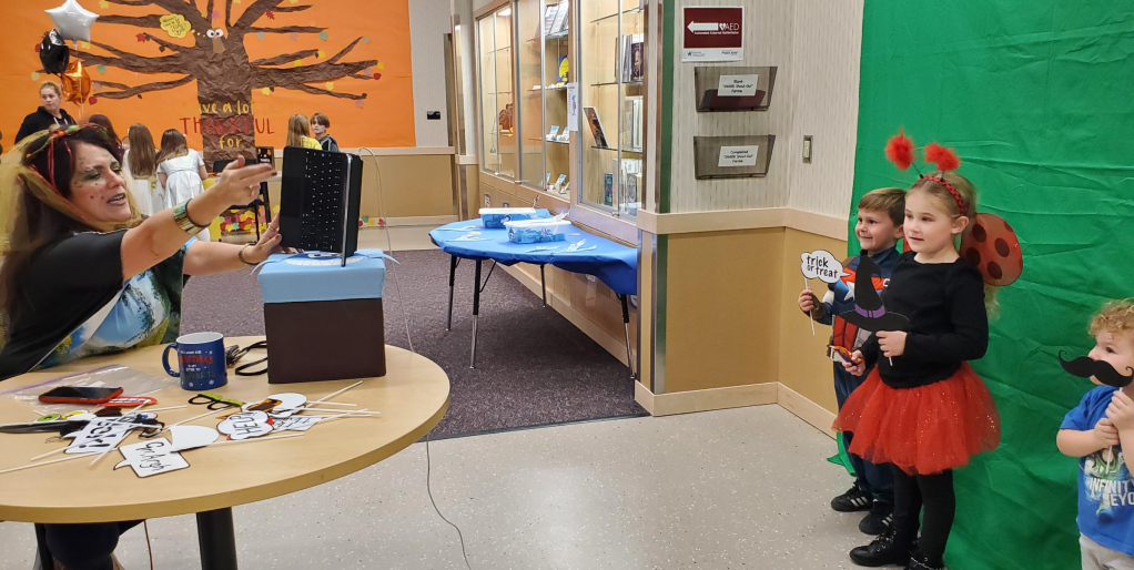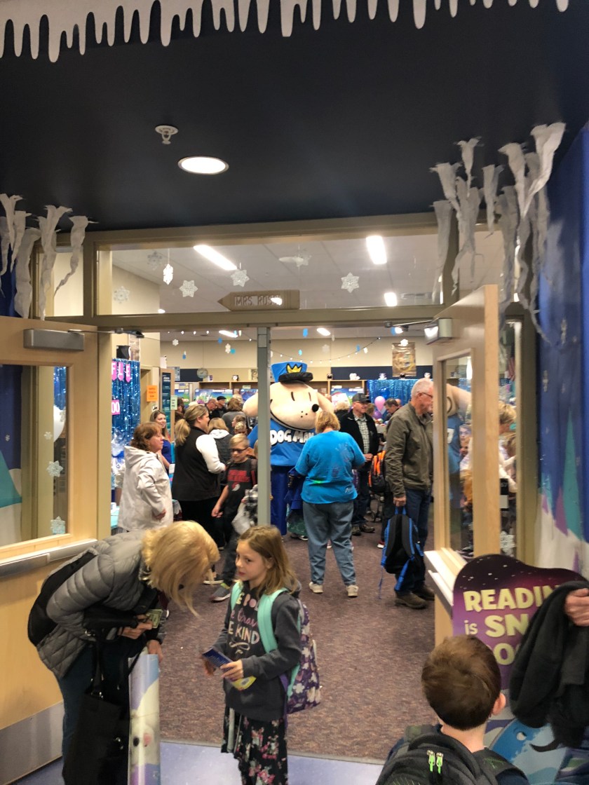 Anyway, it’s been fun and I’ve been teaching outside of the library and leaving my water and laptop and books behind in random classrooms but it’s all worth it!! Thank you to Angela Wolverston for all of her time and creativity and time and more time and her n=husband who dressed up as Dogman and ran into walls and couldn’t fit through doorways. AND THANK YOU, FAMILIES, for coming! And getting books into children’s excited hands!
