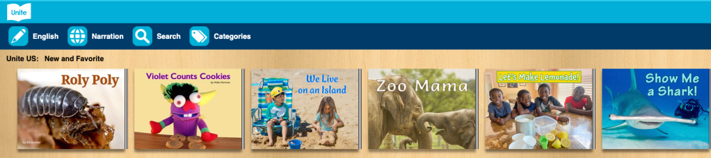 Unite for Literacy is a collection of open access ebooks (no passwords needed!) for Kindergarten and first grades. Or younger! Books will narrate for non-readers.