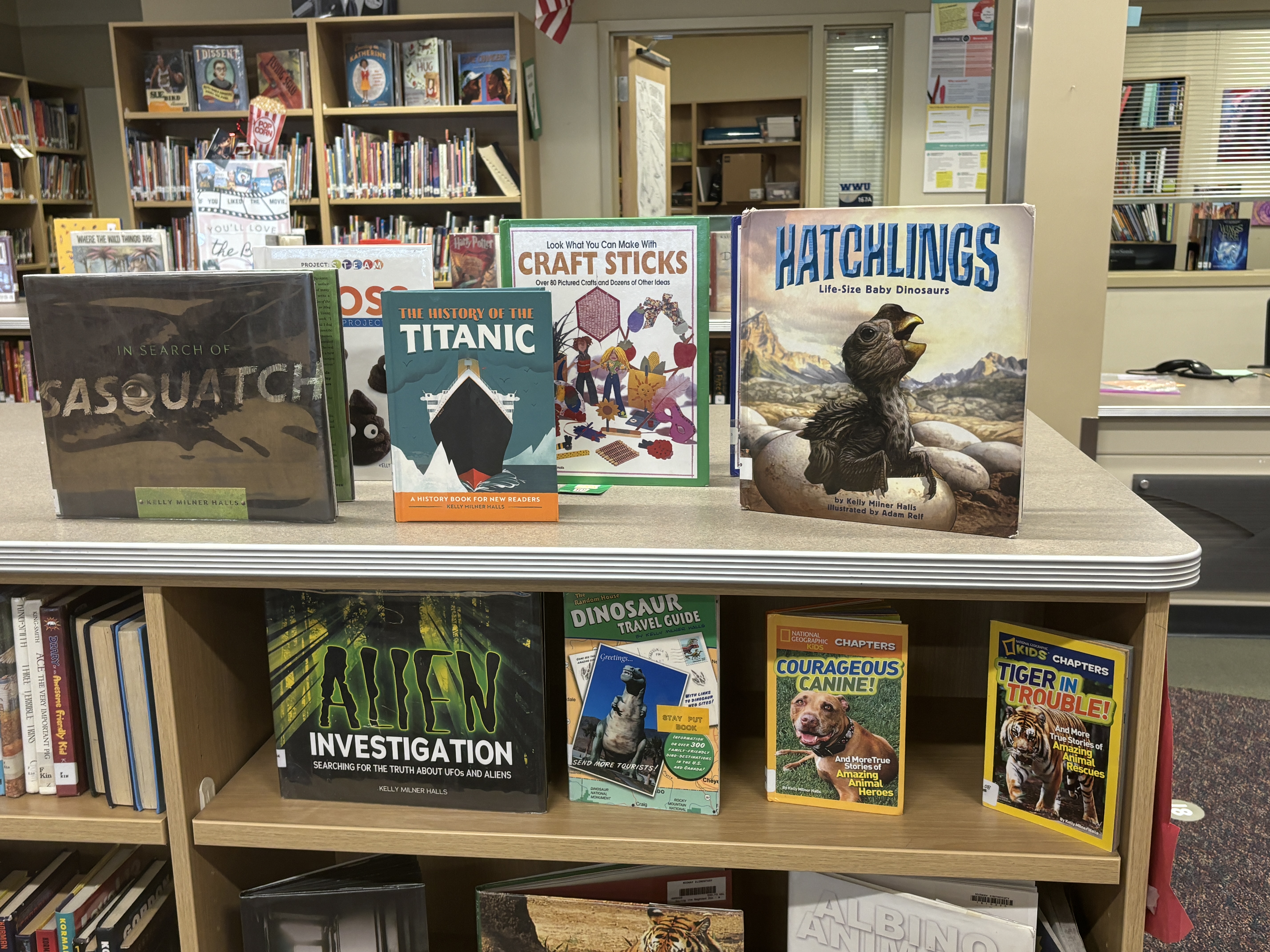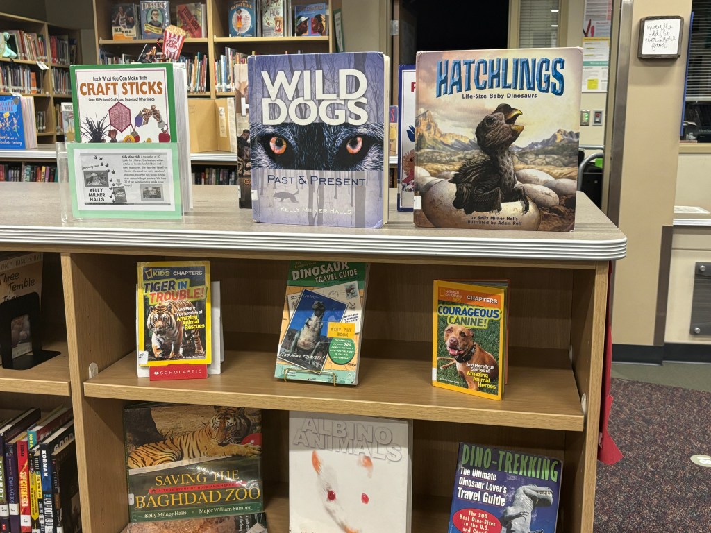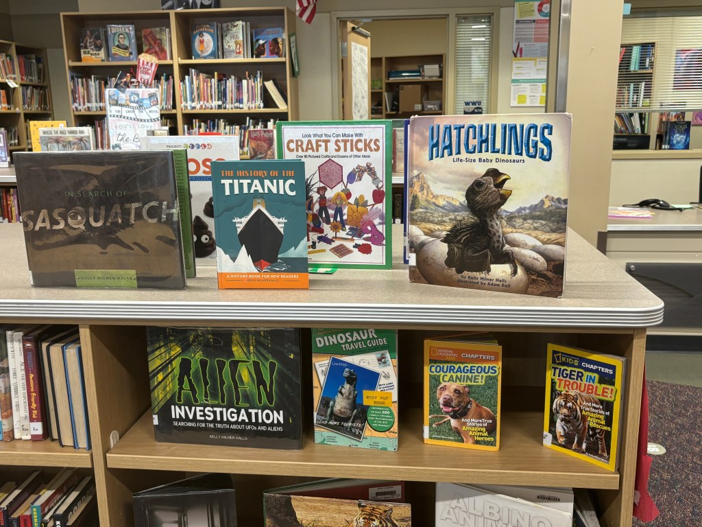 We have 20 of Kelly’s 50 published books for elementary and middle school readers.