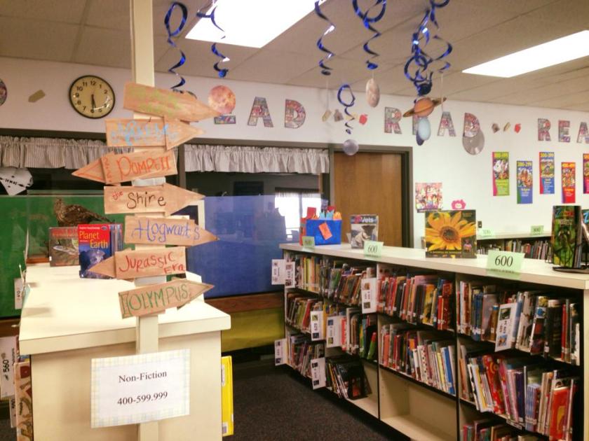 I’ve been planning and tinkering with print and video promotional materials every day for the big reveal of the gorgeous layout Scholastic is famous for providing. The staff helped with planning the teacher/student previews and PTO volunteers showed up on Friday to help move and organize the library space and help display the goods which was so generous and amazing.